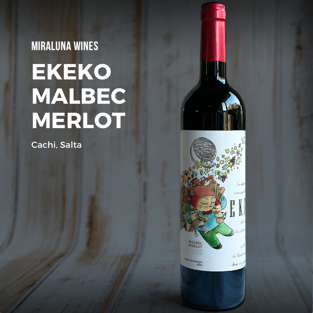 Ekeko es el dios de la abundancia y de la fertilidad para muchas de las comunidades del altiplano andino. Y su espíritu ahuyenta y atrae la fortuna. Nuestro ekeko rinde homenaje a ese dios pagano y ofrece la fruta de Cachi en estado puro, sin crianza en barricas, es un Blend de Malbec y Merlot, las dos cepas que cultivamos en nuestra finca.